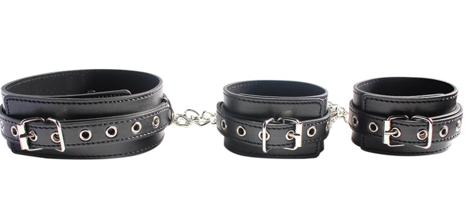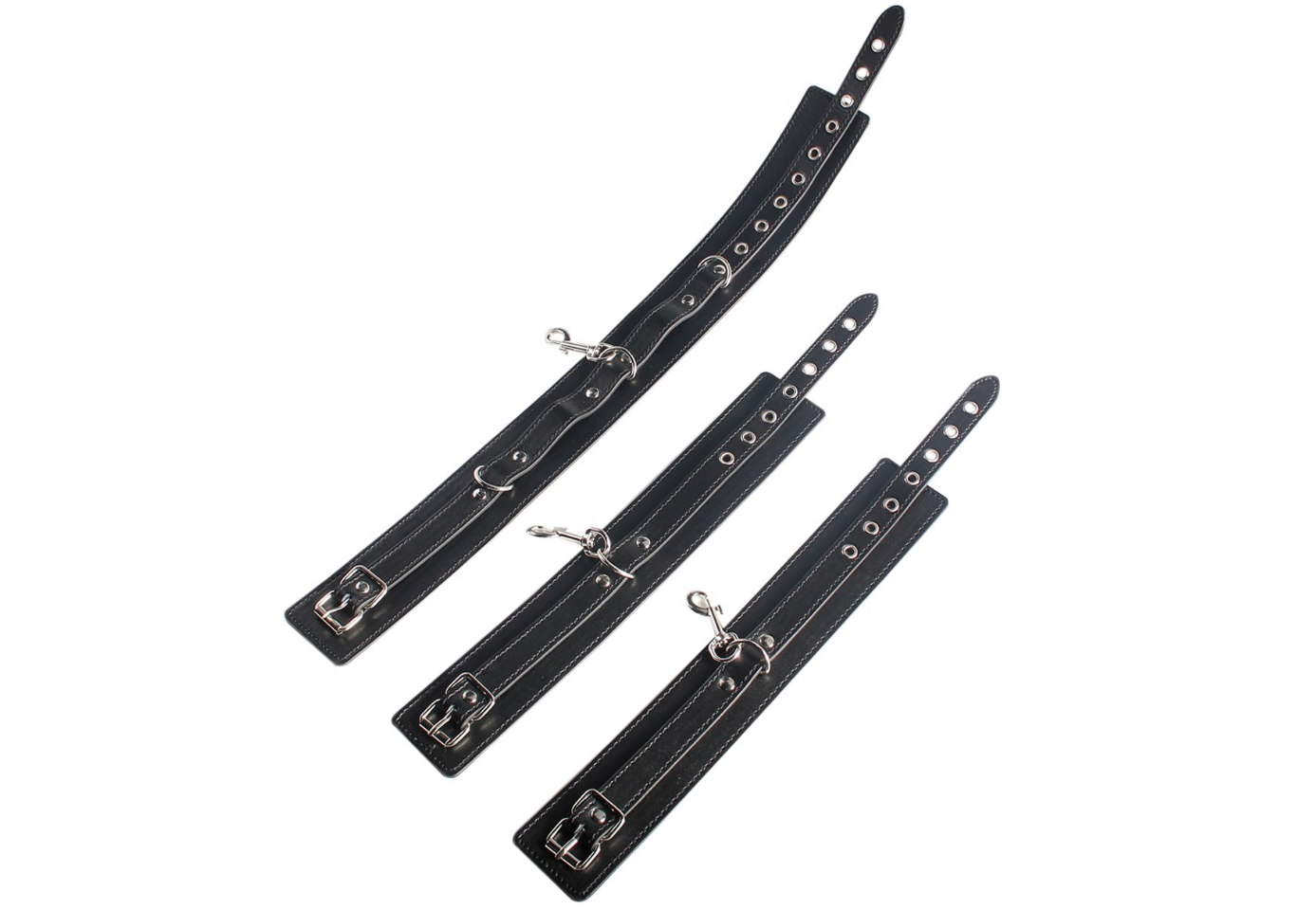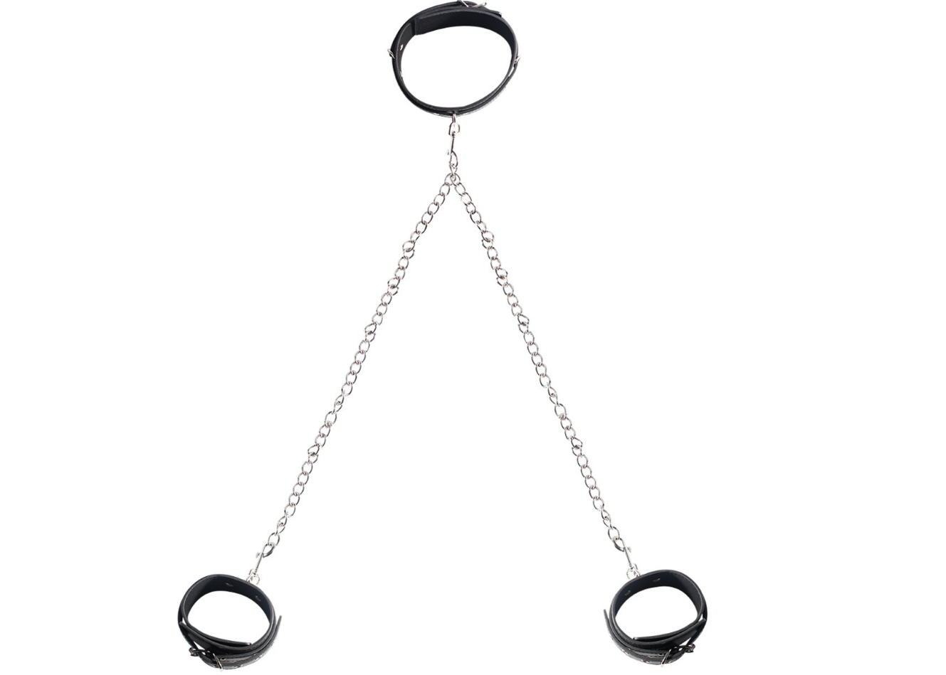 Met deze bondage set is alles mogelijk. Alle onderdelen zijn via handige klemmetjes los van elkaar te gebruiken. De set bestaat uit een halsband en enkelboeien. De bondage-set is gemaakt van stevig kunstleer van hoge kwaliteit. De bondage-set is op deze manier duurzaam en comfortabel om te dragen. Je kunt deze bondage-set gebruiken met alle andere soorten speeltjes van een ultieme spannende BDSM ervaring.