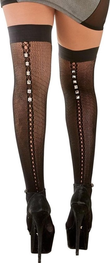 Deze zwarte houden net kousen met een naad aan de achterkant zullen deze fantasieën nog spannender te maken! De, motieven zijn erg sexy: extra grote gaten gaan helemaal naar beneden de kousen zijn zeer opvallend en ze zijn afgewerkt met vierkante studs gaan de dij. Ze blijven op hun eigen, dankzij de siliconen strip rond de top!