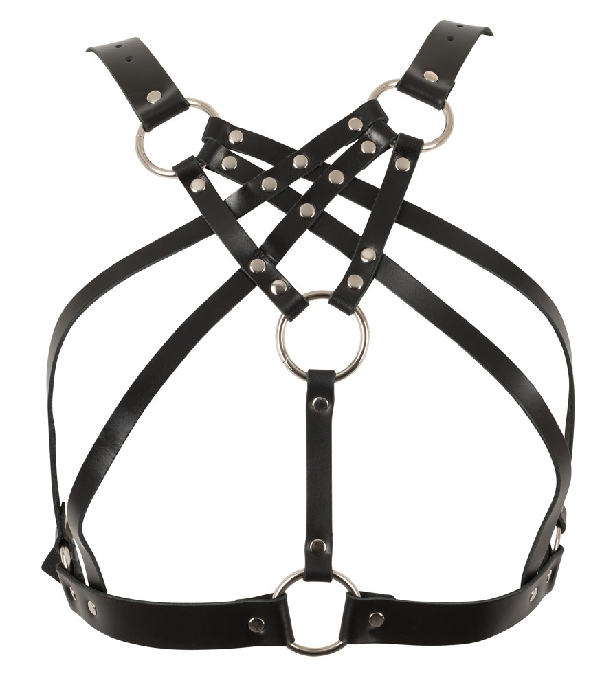 Dit borstharnas is prachtig met D-ringen en decoratieve klinknagels. De bandjes zijn in maat verstelbaar.