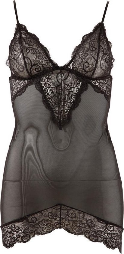 Ga voor comfort, verleiding en sensatie in een met dit schitterende zwarte lingerie jurkje uit de Cottelli Collection. Dit verleidelijke jurkje is gemaakt van luchtig, doorschijnend materiaal. Hierdoor is het heerlijk om te dragen boven en onder de lakens. Het geheel is afgewerkt met kanten details voor een sensuele twist. Draag dit jurkje in de slaapkamer en verleid je partner voor een avond om nooit te vergeten.