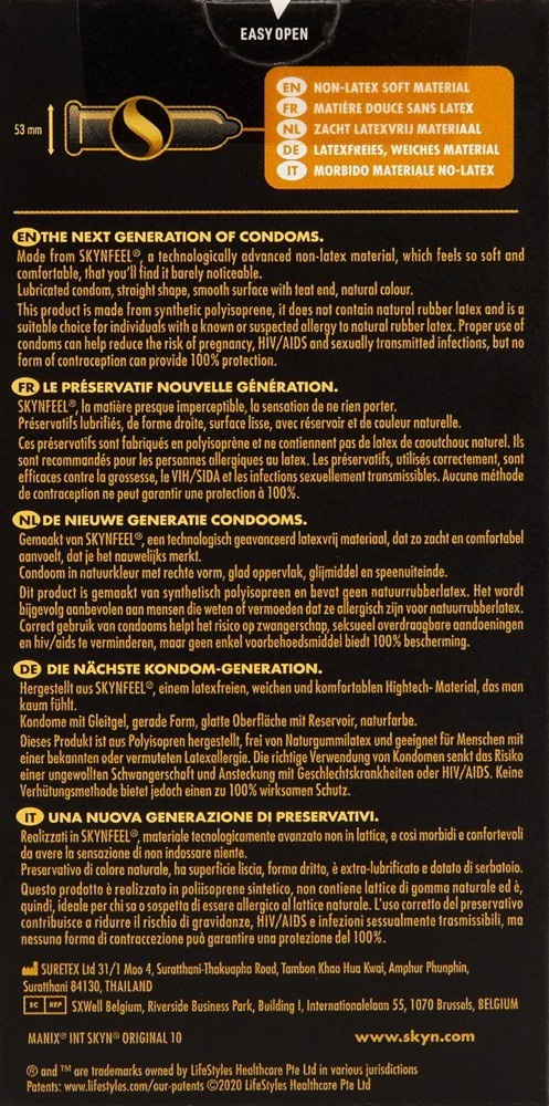 Perfect voor mensen die allergiegevoelig zijn voor latex. Deze condooms zijn hoogwaardig gefabriceerd volgens de hoogste veiligheidsstandaarden. De Skyn orignal is extra dun en geeft een heerlijk realistisch gevoel tijdens gebruik. Gemaakt van sensopreen voor een realistischer gevoel. Transparant.