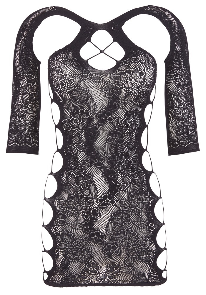 Met deze verfijnde netstof jurk met halfopen zijkant ben je helemaal klaar voor jouw spannende date. Laat jezelf zien in jouw meest vrouwelijke vorm en biedt jezelf aan als de ultieme prijs. Met halve arm en gekruiste linten op het decolleté zal menig mannen niet van jou af kunnen blijven.