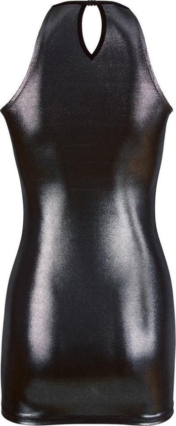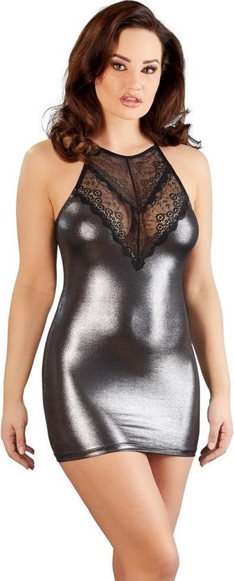 U zult ziet er fantastisch uit als je dit strak mini jurk te dragen op een avondje uit! Het is niet alleen de vorm van de jurk die je rondingen benadrukt, maar ook de glanzende glinsterende zilver materiaal ook.