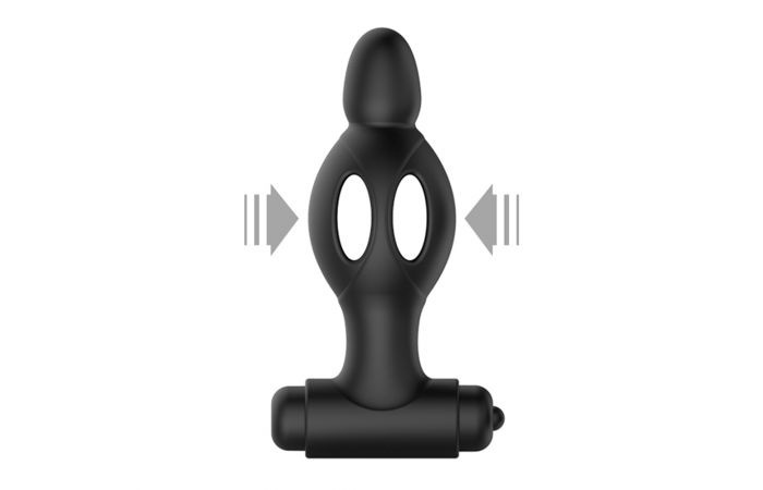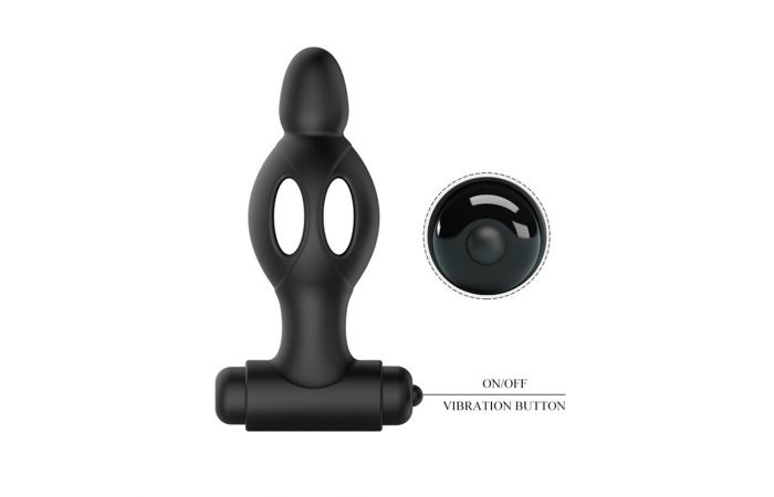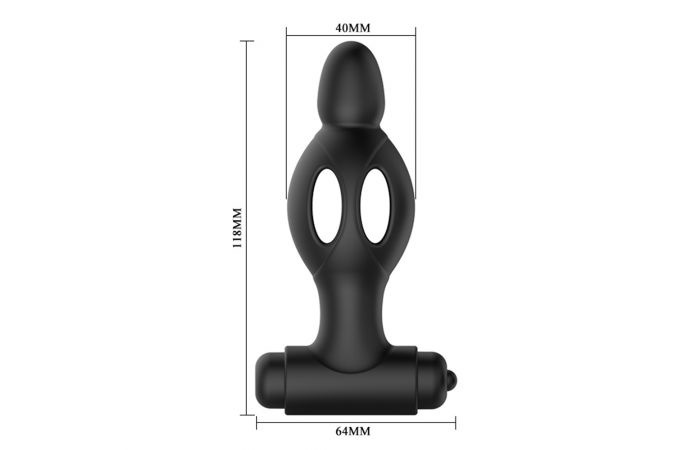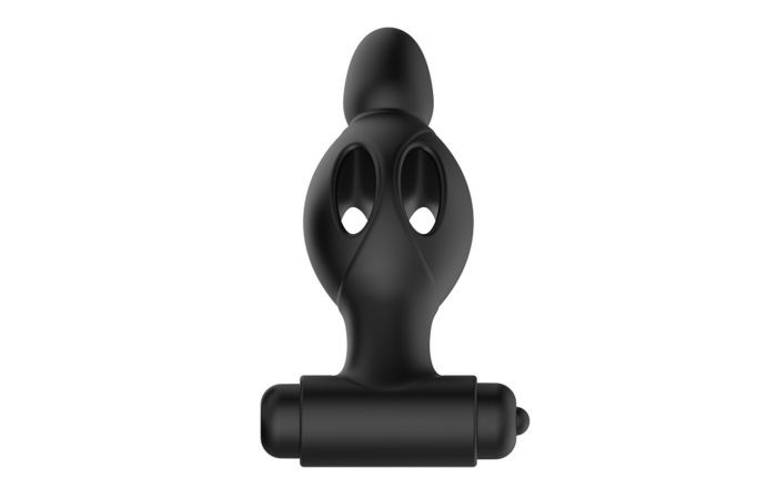 Deze zwarte vibrerende buttplug heeft een bullet vibrator aan de onderkant. Wanneer je op de knop drukt kun je tussen de 10 vibratiestanden wisselen. De plug heeft een zachte bolvormige punt met opengewerkt ontwerp voor soepel inbrengen.