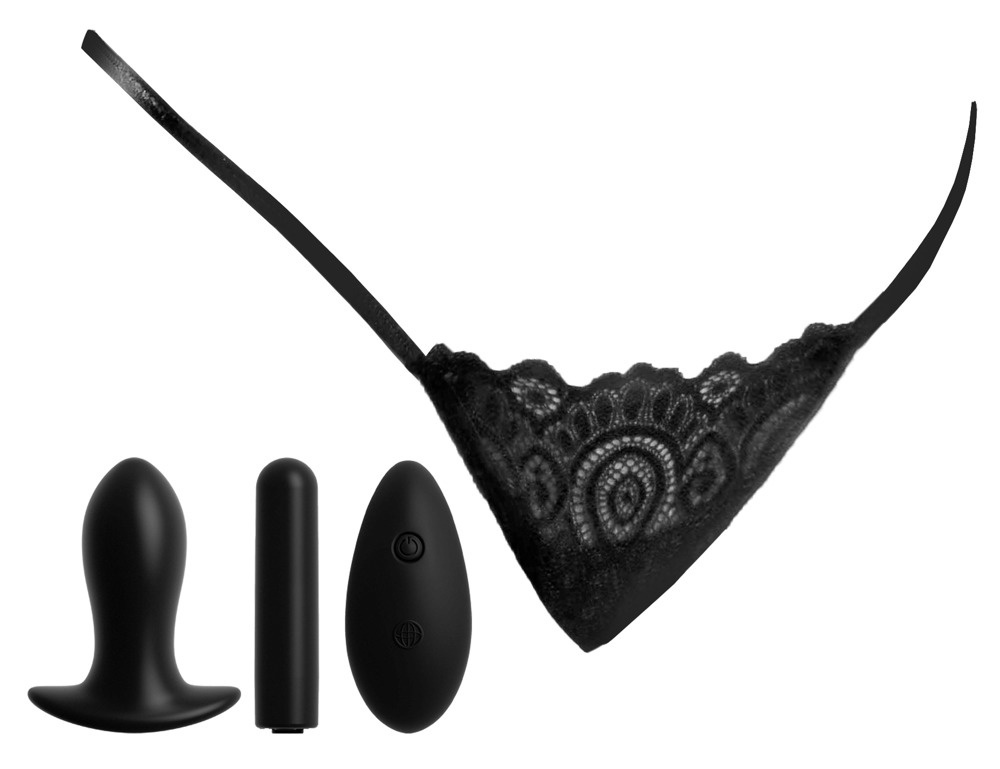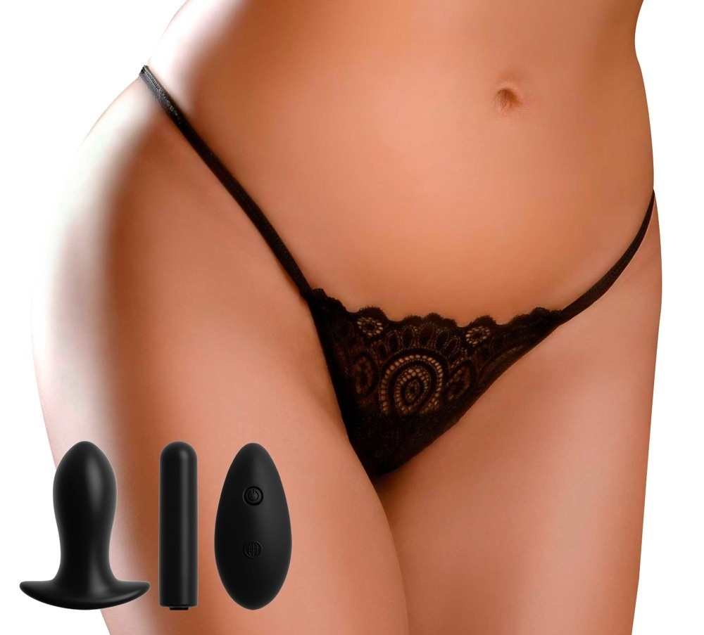 - Kanten slip plus een vaginale plug en vibro-bullet