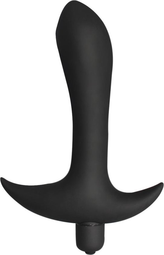 Deze zwarte (prostaat)vibrator wordt gebruikt voor de exclusieve stimulatie van het mannelijke lustpunt (de prostaat). Bij vrouwen zorgt deze verdikking voor een sterk stimulerende werking. Om deze zo gericht mogelijk te stimuleren, wordt de vibrator geleverd met een rechte schacht en een gebogen punt, en wordt tegelijkertijd voorkomen de handgreep te diep binnendringt. Door de T vorm wordt de perineum bij mannen of de clitoris bij vrouwen extra gestimuleerd. Geniet van dit nieuwe speeltje en geniet ook van de 10 krachtige doch rustige vibratiemodi die je gemakkelijk kunt bedienen met een druk op een knop. Batterijen 1 x AAA (niet inbegrepen). Inbrenglengte maximaal 11 cm. Gemaakt van siliconen en ABS.